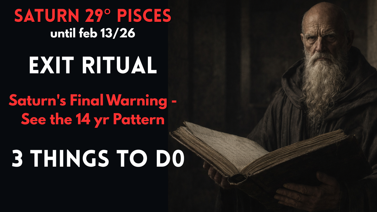 Saturn at 29° Pisces is the final audit of a 14-year cycle of sacrifice, fantasy, and emotional anesthesia.